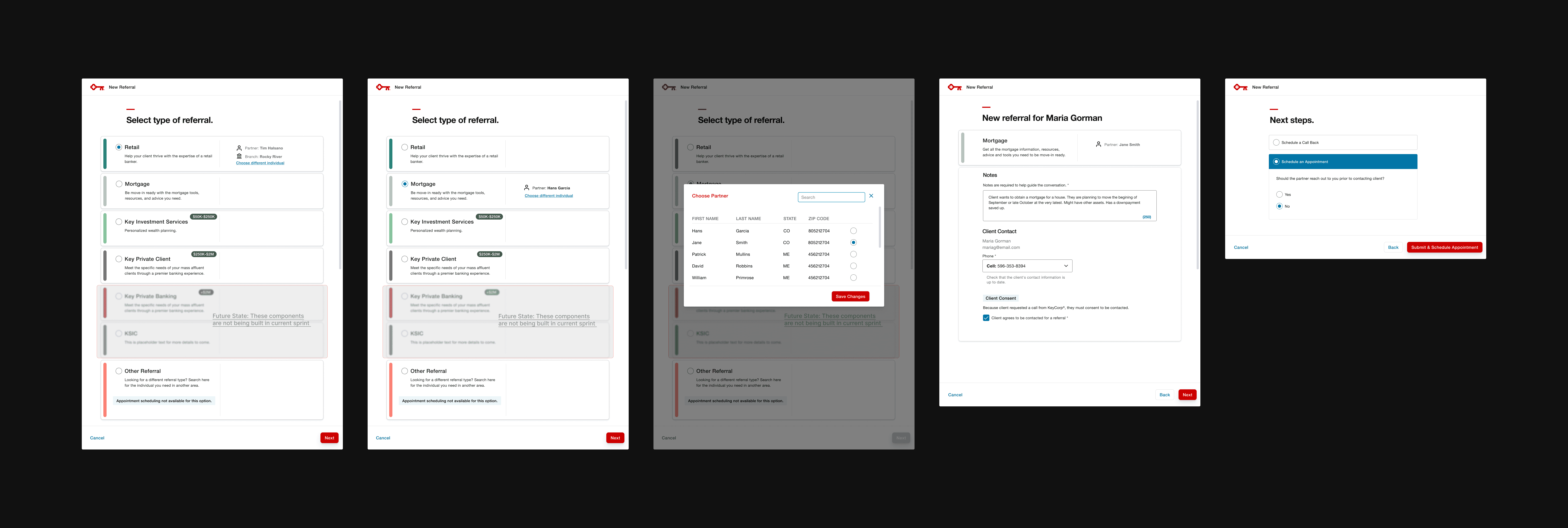 End-to-end UX research and product design for KeyBank's internal referral tracking app